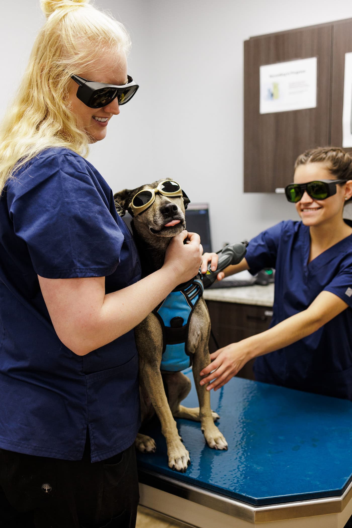 Laser Therapy is a drug free, pain free, surgery free treatment option. Laser therapy utilizes specific wavelengths of light to create therapeutic effects such as, improved healing time, pain reduction, and decreased swelling. This option is available to treat many issues, including osteoarthritis, soft tissue injury, and chronic wounds. Improvement is seen over a period of several treatments, although improvement seen with only one or two treatments is not unlikely. Patients typically express greater comfort and mobility within a day after receiving laser treatment.